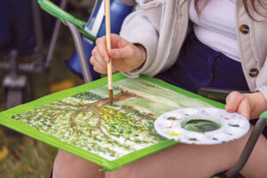 It’s no surprise that artists love the challenge of truly capturing the essence of this season through ink and brushstrokes on paper, and we thought we’d try our hand at it too. The tradition of “plein air” painting, French for “in the open air,” is the practice of creating a finished painting outdoors directly from life, to capture the effects of natural light and atmosphere. Inspired by this timeless pursuit, we brought that experience to our community in our newest program offering, Painting in the Park. Throughout the month of September, participants were given the opportunity to explore creating art while experiencing all the sights, sounds and sensations of the outdoors.