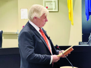 New Ward 7 councillor Garry Procter is sworn in during the Cypress County organizational meeting on Monday.--News Photo Anna Smith