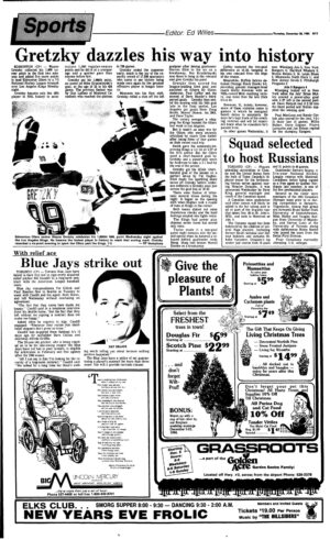 A then 23-year-old Gretzky recorded an assist two minutes into an Edmonton Oilers’ 7-3 win over the Los Angeles Kings. The assist, the first of a six-point night against what would be his next team in the NHL, was Gretzky’s 1,000th regular season point in the NHL.
