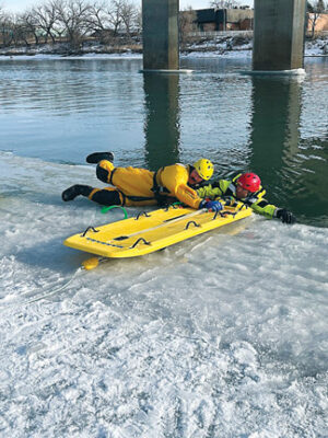 Last month fire crews responded to three calls related to ice and aquatics rescue. As well, a man’s body was pulled from Rattlesnake Lake on New Year’s Day by crew from Bow Island Fire Department after he had fallen through the ice.