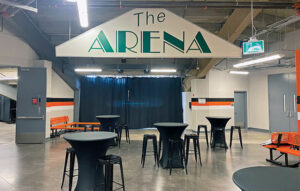 The upgrades to the first-come, first-served section also included a row of seats from The Arena, fastened to a wall and functional for any fans looking to relive the feel. That same wall features a print of the ‘smartie’ seats and a replica of the old boards from the rink.