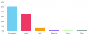 However, this represents a much smaller gap than at the time of the federal election last spring, when 65 per cent of Albertans reported they would vote Conservative and only 28 per cent intended to vote Liberal.