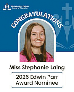 Stephanie Laing, a first-year teacher at Notre Dame Academy, has been chosen to represent the Medicine Hat Catholic Board of Education as its 2026 Alberta School Boards Association Edwin Parr Award nominee.