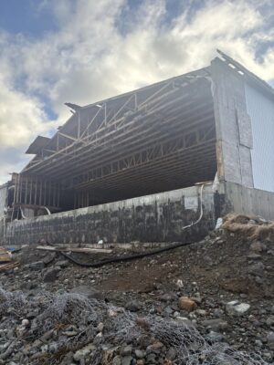 The smell from the decrepit factory has long tormented the town when the wind blows onshore, and Ryan says the stench will likely be worse without the front wall to contain it.