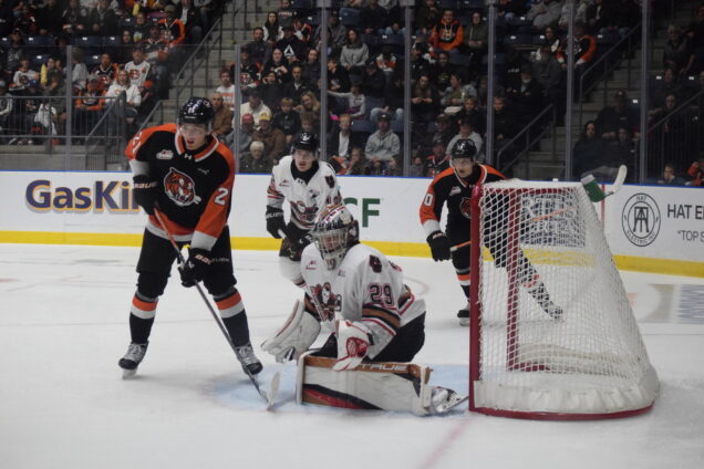 After the Tigers outshot the Hitmen in the first, shots were even in the second and the Hitmen outshot the Tigers in the third. But first-time WHL goaltender Carter Casey stood tall, stopping 30 of 31 shots.