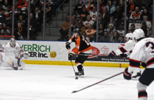 With Jonas Woo suspended for Game 5, Reschny skated alongside captain Bryce Pickford, facing the Pats’ top line. He picked up an assist on Pickford’s last-minute goal to end the second period trailing by just one. Reschny jokes Woo doesn’t have to worry about losing that spot, but he enjoyed facing the Pats’ best, crediting the captain for making his job simple.