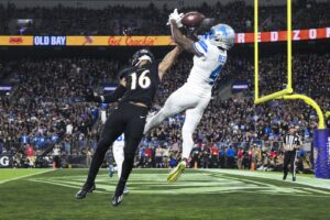 The Lions sacked Lamar Jackson seven times, a week after sacking Chicago’s Caleb Williams three times, addressing concerns outside from outside the organization about their ability to affect quarterbacks.
