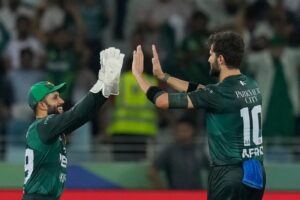 Mohammad Nawaz’s 15-ball cameo worth 25 runs then set up the game for Pakistan. He hit one four and two sixes, adding a vital 38 off 24 balls with Haris as Pakistan crossed the 130-mark.