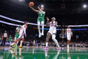 Derrick White scored 13 points of his 25 points in the third quarter, when the Celtics scored 16 straight points to turn a five-point deficit into an 11-point lead. The Celtics led 94-84 with nine minutes remaining before the Sixers scored eight straight points to make it close.