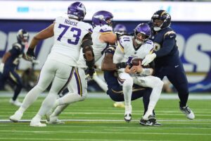 After fielding their most complete lineup of the season last Sunday against Philadelphia, the Vikings took a concerning step back with their overall health, thanks in part to the grueling four-day turnaround for the trip to Los Angeles. Darrisaw left after two series, and O’Neill couldn’t make it at all. Kelly (concussion) must miss at least one more game, but there’s no telling when or if he’ll return. Fullback C.J. Ham (hand) was inactive on Thursday along with Van Ginkel (neck). The return of running back Aaron Jones from a four-game absence was one positive.