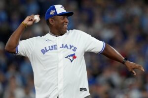 Carter threw out the opening pitch to all-star shortstop Bo Bichette ahead of Game 2 of the World Series as the Blue Jays hosted the Los Angeles Dodgers on Saturday. Carter received a rousing ovation from the packed Rogers Centre, especially after donning Toronto’s home run jacket and jogging through the home dugout.