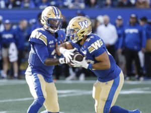 Bombers backup Matthew Peterson, who hails from Brooks, Alta., suited up instead of Brady Oliveira and led all running backs with 17 carries for 80 yards.