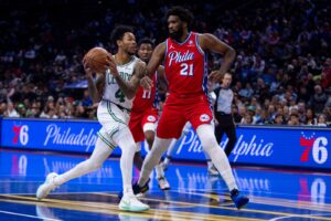 Boston led by 20 points in a dominating first half. Maxey’s drive with 6 1/2 minutes left in the third tied it at 72-all, but Philadelphia never was able to go in front.