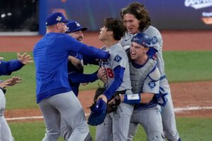 The 27-year-old Japanese ace pitched out of a jam in the ninth inning, leaving the bases loaded and the score tied at 4. After cruising through the 10th, he worked around Vladimir Guerrero Jr.’s leadoff double to preserve a 5-4 lead and lock up LA’s second consecutive championship.