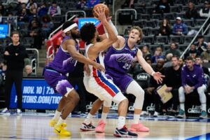 Former Piston Svi Mykhailiuk scored a career-high 28 for the Jazz, who have lost four of five. Lauri Markkanen added 25 and Jusuf Nurkic had 17 rebounds.