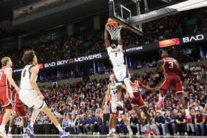 Jalen Warley and Braden Huff each scored 13 points for Gonzaga (2-0) and the duo combined to grab 17 rebounds. Freshman point guard Mario Saint-Supry finished with eight points, six assists, four rebounds and three steals.