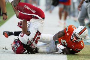 CJ Bailey completed 17 of 30 passes for 120 yards for N.C. State (5-5, 2-4). The Wolfpack — with Miami playing reserves on defense at the time — got on the scoreboard on a rushing touchdown from Bailey with 2:18 left. That extended N.C. State’s streak of not getting shut out to 144 games; its last time being blanked was Oct. 4, 2014.