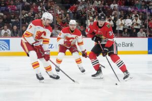 Sam Rinzel chipped the puck out of Chicago’s defensive zone, and Bedard took off down the ice. After Wolf whiffed on a clearing attempt, Bedard touched a backhand between the goaltender’s legs while fighting off Calgary defenseman Yan Kuznetsov.