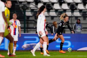 Juve goalkeeper Pauline Peyraud-Magnin, who was born in Lyon and started her career there, was beaten by Chawinga’s low shot from the left on the hour.