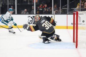 Hertl scores twice, Lindbom gets his 1st NHL win in the Knights’ 4-3 victory over the Sharks