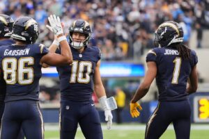 Herbert has completed 66.9% of his passes for 2,842 yards and 21 touchdowns against 10 interceptions, and he is second on the team with 353 yards rushing. He has also taken the third-most sacks in the NFL (38) and is on pace to absorb the most hits in Herbert’s six seasons with the Chargers.
