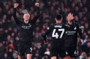 Haaland’s 100th goal came in his 111th Premier League game when he lashed the ball into the back of the net in the 17th minute at Craven Cottage. Shearer, the league’s all-time leading scorer (260 goals), reached his century in 124 games.