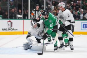 Los Angeles’ Anton Forsberg stopped 17 shots, entering play with four minutes left in the first period after starter Darcy Kuemper was hit high by Rantanen.