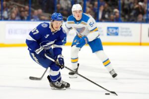 Faulk cut the Lightning lead in half at 6:43 of the second, but Cirelli answered that 1:18 later getting a stick from the middle slot on Raddysh’s shot. Raddysh became the second-fastest defenseman in Lightning history to reach 100 career points in his 206th game.