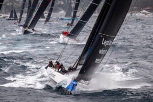 LawConnect led the fleet out of Sydney harbor in search of its third straight line honors win. Overnight conditions Friday night were rough on the fleet, but not as dangerous as last year when two sailors died in storms on the first night.