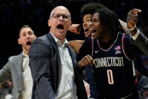 Alex Karaban led the Huskies with 19 points, seven rebounds and four assists. Solo Ball scored 17 and Tarris Reed Jr. added 10 points and eight boards. Mullins finished with six rebounds, four assists and two steals.