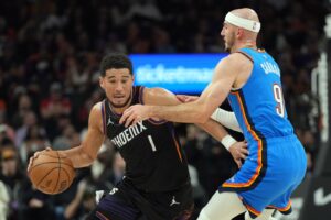 Booker took the late inbounds pass and drilled the long 3-pointer over Alex Caruso, shaking a season-long slump from long range. Ajay Mitchell missed a corner 3 at the buzzer that would have tied it.