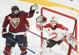 Savolainen’s goal with 2.9 seconds left in the first period could have taken momentum away from Montreal, but the Victoire had a 13-4 shot advantage in the second period, and 18-7 over the last two periods.