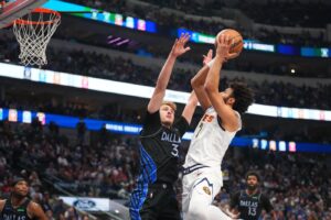 Cooper Flagg sprains an ankle and is ruled out after halftime for Mavs against Nuggets