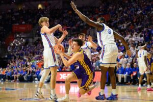 Florida closed the first half with a flurry, hitting three 3s in three minutes to build a 12-point lead. Thomas Haugh delivered the team’s final six points in the spurt.