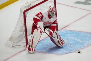 After being shut out on Sunday, the Red Wings scored 33 seconds into the first period, with Raymond finding a wide-open Marco Kasper on an odd-man rush.