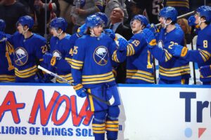 Peyton Krebs had a goal and an two assists for the Sabres. Tage Thompson, Zach Benson, and Josh Doan also scored for Buffalo, with Rasmus Dahlin had two assists. Alex Lyon, who has won 11 of his past 12 starts, made 38 saves.