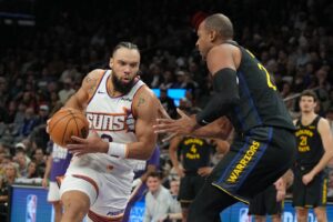 The Suns were without guards Devin Booker (ankle) and Jalen Green (hamstring/hip). The Warriors didn’t have Stephen Curry (knee) or new forward Kristaps Porzingis, who hasn’t joined the team after being acquired from the Hawks in a trade.