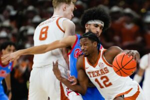 Camden Heide’s 3-pointer sparked a 16-0 run that gave the Longhorns a 29-11 lead with about seven minutes left in the first half. Mark scored nine points and Vokietaitis chipped in four during the stretch.