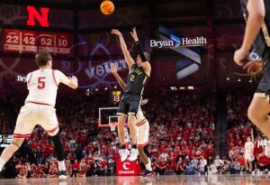 Sandfort’s layup with 1:31 left in overtime gave Nebraska its first lead, 77-75. Cluff had a chance to tie it when he got fouled pulling down an offensive rebound, but he made only one of two free throws. Cluff’s putback on the next possession put the Boilermakers up by a point in the final seconds. Lawrence fumbled Sam Hoiberg’s inbound pass, and Harris picked up the ball and got fouled. After Harris made his free throws, Cluff intercepted the Huskers’ length-of-the-court pass just ahead of the buzzer.
