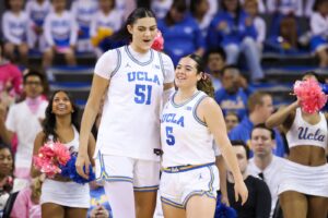 Betts had her 10th double-double this season and the 43rd in her career. Charlisse Leger-Walker and Gianna Kneepkens had 12 points apiece for the Bruins and Gabriela Jaquez scored 11. Sienna Betts and Lena Bilic each had 10 points.