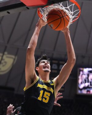 It was the 7-foot-3 Mara’s early tone-setting presence that helped the Wolverines turn the tables on Purdue’s usually dominant front line as two-time national player of the year Zach Edey watched from the second row. Mara made each of his first four shots on the way to a 10-point, eight-rebound first half. He spent most of the second half in foul trouble, finishing 4 of 6 from the field as Michigan had a 39-31 rebounding advantage.