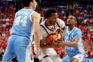 But N.C. State pressed the attack all night against an injury-depleted rival, backed by a boisterous crowd. The Wolfpack shot 53.1% to build a 16-point halftime lead and never looked back.