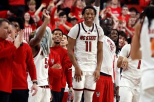thrilling win against Duke, and sat alongside Veesaar (lower-body injury) while wearing a protective blue splint as the Wolfpack rolled to a blowout win.