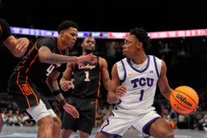 They chipped away at their deficit over the next few minutes, finally pulling ahead on Clary’s 3-pointer with 5:40 to go. And while the Cowboys managed to answer a couple of times down floor, the Horned Frogs eventually started to pull away.
