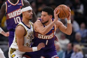 INDIANAPOLIS (AP) — Devin Booker scored 43 points, Jalen Green had 36 and the Phoenix Suns beat NBA-worst Indiana 123-108 on Thursday night for their fourth straight victory and the Pacers’ 11th loss in a row.