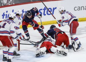 Winnipeg netminder Connor Hellebuyck only stopped 10 shots while Rangers goalie Igor Shesterkin made 24 saves, including three on breakaways.