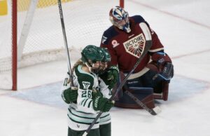 Poulin put Montreal into the lead with 5:10 remaining in the first period, tipping Gosling’s shot on the game’s first power play. Then, two minutes later, Poulin seemed to reinjure her right knee and came off in the middle of the play.