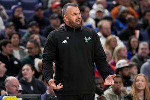 South Florida coach Hodgson’s emotions run from tears to touch of anger after NCAA Tournament debut