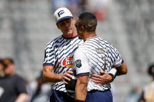 Team USA crushed Brady’s Founders FFC 43-16 after dismantling Joe Burrow’s Wildcats FFC squad 39-16. Burrow, Jayden Daniels, Saquon Barkley and the Wildcats then eliminated Brady, Hurts and the Founders from the round-robin tournament with a 34-26 victory.