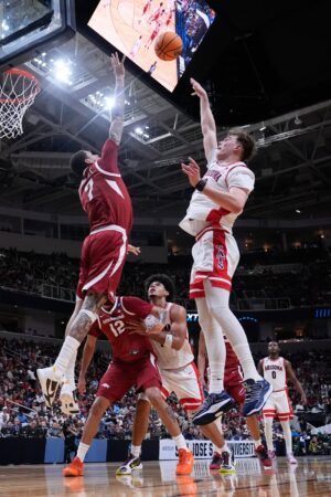 In a season that set records for 3-pointers attempted and made across college basketball, Arizona ranks 360th out of 365 Division I teams with 16 attempts per game from long range — more than seven fewer per game than the average team. The Wildcats attempted just eight 3s — making five — in 109-88 win over Arkansas in the Sweet 16 for the fewest attempts in any tournament game since a Purdue team led by big man Zach Edey had seven in a title-game loss to Connecticut in 2024.